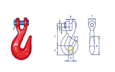 鉤體采用優(yōu)質(zhì)合金結(jié)構(gòu)鋼模鍛而成。最小破斷載荷為額定工作載荷的4倍。鍛件經(jīng)熱處理。